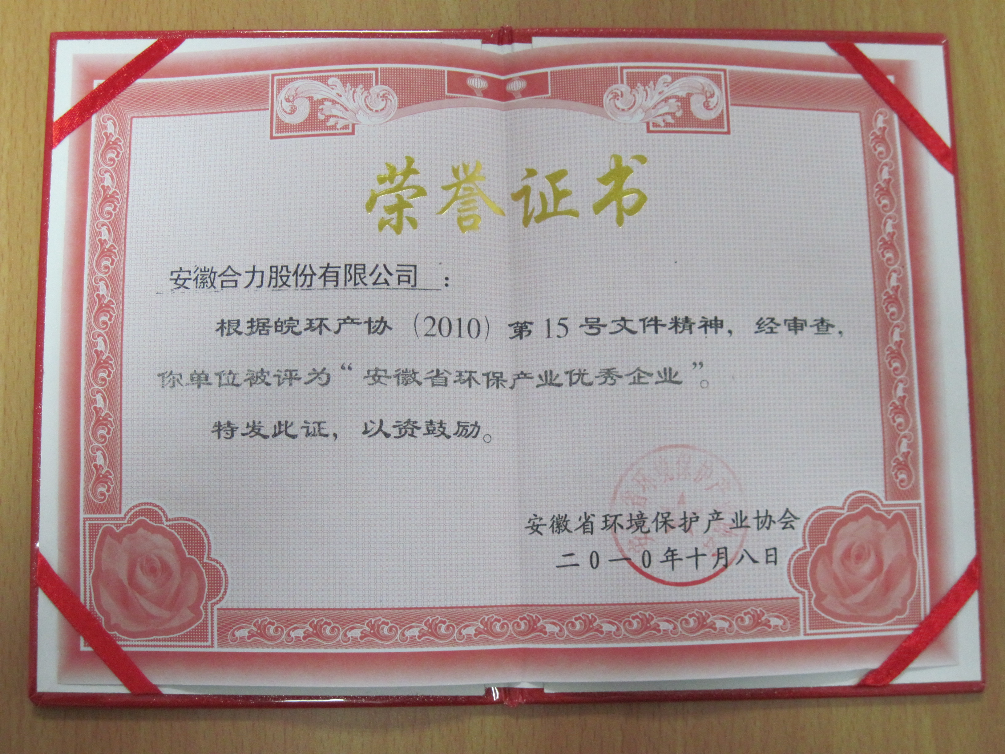 2010 安徽省科学手艺奖奖状:1.0-4.5吨交流平衡重式蓄电池叉车一等奖